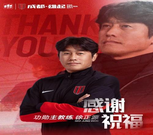 帶隊(duì)從中甲到亞精聯(lián)賽,成都蓉城官宣徐正源離任