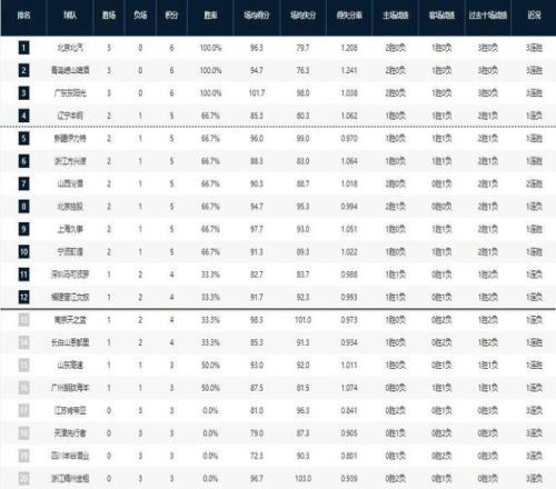 CBA聯(lián)賽已經(jīng)打完了第三輪,有的球隊的表現(xiàn)非常不錯,取得了三戰(zhàn)全勝的戰(zhàn)績,比如北京男籃、青島男籃和廣東男籃;有的球隊的表現(xiàn)超乎了球迷預(yù)期,比如陣容弱化明顯的遼寧男籃,以及前幾個賽季的弱旅寧波男籃;還有的球隊的表現(xiàn)比較糟糕,比如一直都是CBA勁旅的浙江男籃。打完三輪比賽后,積分榜的情況也出現(xiàn)了不小的變化,接下來詳細看一下。