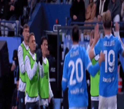 打進(jìn)精彩、關(guān)鍵的進(jìn)球之后,霍伊倫一路小跑,與那不勒斯替補球員慶祝。隊友們紛紛涌上,慶祝霍伊倫的完美表演。10天之前,霍伊倫用梅開二度幫助那不勒斯擊敗尤文,這場意超杯半決賽,霍伊倫再次成為英雄。