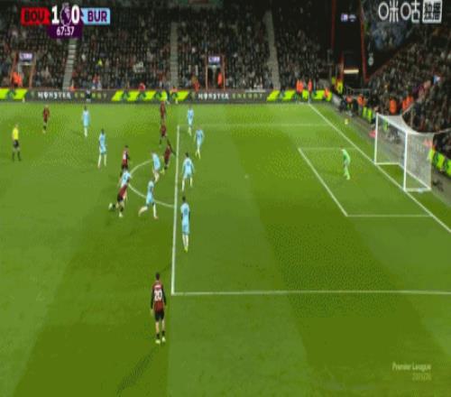 第68分鐘,塞門約大禁區(qū)線上兜射破門,伯恩茅斯1-0伯恩利