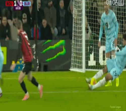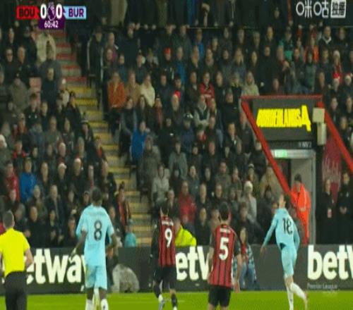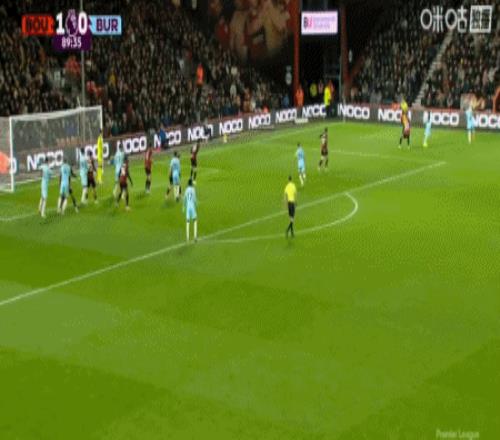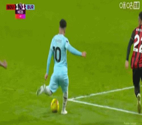 第90分鐘,愛德華茲傳中,布羅亞頭球破門扳平比分,伯恩利1-1