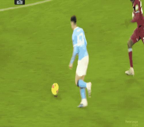 第82分鐘,福登禁區(qū)外突然起腳遠射,阿雷奧拉騰空而起,將球托出橫梁。