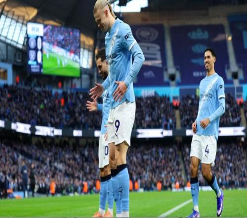第5分鐘,曼城在左路打出流暢配合,接到福登的傳球,哈蘭德的射門被阿雷奧拉擋出,跟進補射,將球打進死角,進球后的哈蘭德跳起了機械舞。