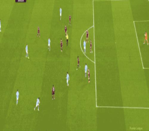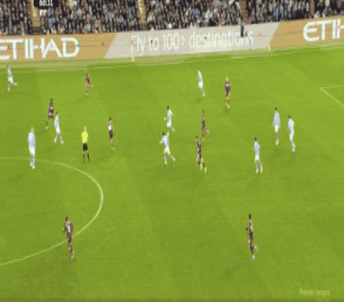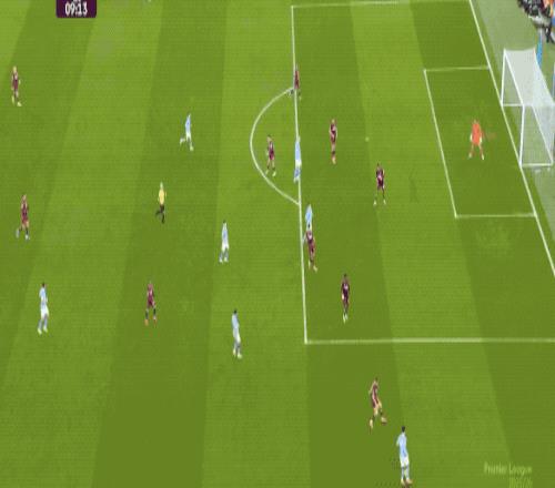 第54分鐘,曼城防線明顯松懈,鮑文的射門擊中邊網(wǎng)。