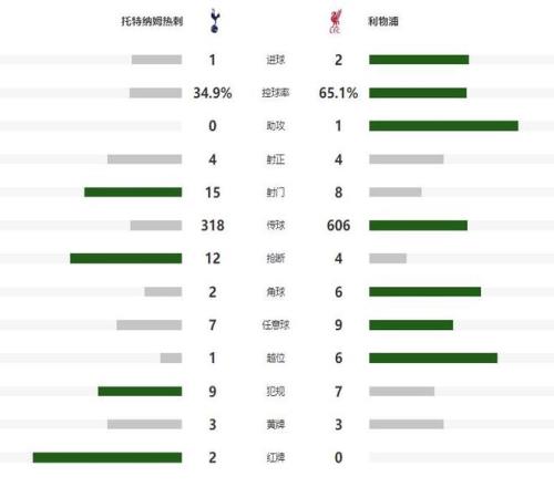 余下的時(shí)間,熱刺大舉壓上讓利物浦非常被動(dòng),第83分鐘替補(bǔ)登場的里沙利松,利用角球的機(jī)會(huì),將比分追至1-2,4分鐘之后,里沙利松抓住瓊斯失誤的機(jī)會(huì),再次完成打門,可惜這一次被封堵,傷停補(bǔ)時(shí)階段,羅梅羅報(bào)復(fù)性踢人,吃到第二張黃牌也被罰下,最終熱刺只能接受主場輸球的結(jié)局。