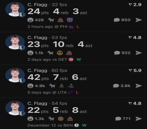 經(jīng)歷了剛進聯(lián)盟之初的掙扎,弗拉格終于逐漸兌現(xiàn)天賦,本賽季至今場均貢獻18.8分6.4板3.5助2.1失誤1.3斷,三項命中率47.8%、23.4%和82.8%。