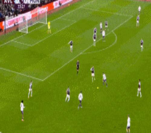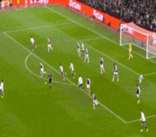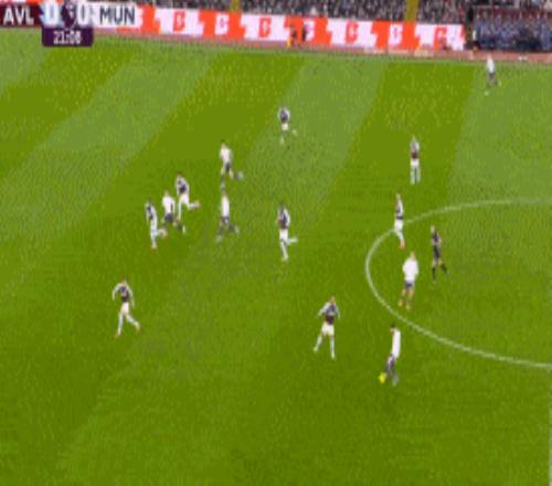 第45分鐘,羅杰斯左路內(nèi)切后兜射,皮球直掛網(wǎng)窩死角,拉門斯毫無反應(yīng),維拉1-0曼聯(lián)。