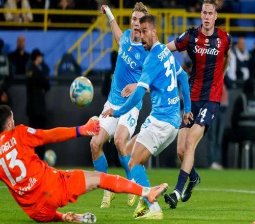 半決賽對AC米蘭,赫伊倫對位打爆德溫特,靠個人能力策動第一球、又小角度打入第二球。狀態(tài)出色的丹麥中鋒,自然成了博洛尼亞布防的重點。伊塔利亞諾選擇用同樣來自北歐的挪威中衛(wèi)海根與之對位,后者的表現(xiàn)顯然比德溫特出色,但仍然是不夠的。海根嘗試用身體對抗遏制赫伊倫,結果上半場就吃到黃牌,博洛尼亞門前也數(shù)次風聲鶴唳。那不勒斯從開場就占據(jù)局面主動,埃爾馬斯開場不久就與進球擦肩而過,內(nèi)雷斯則在第36分鐘從中場送出精妙直塞,插上領球的斯皮納佐拉射門,被拉瓦利亞封出。