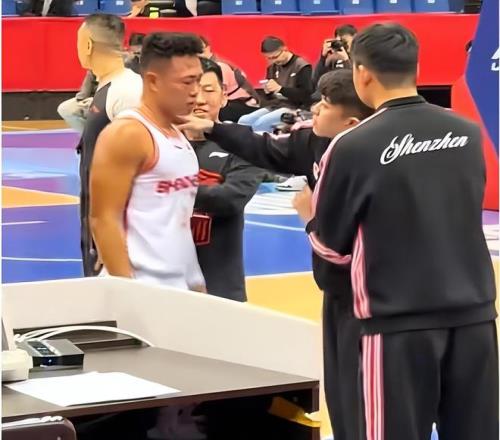 他在第一節(jié),一次搶籃板時(shí),被青島男籃球員呂俊虎一巴掌扇在臉上,當(dāng)時(shí)就痛苦地蹲在地上。從慢鏡頭看,呂俊虎并沒(méi)有犯規(guī)嫌疑。